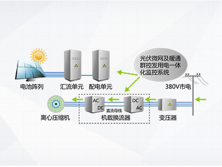 光伏發電系統不發電,主機向電網取電運行,機組相當于常規高效變頻離心機。