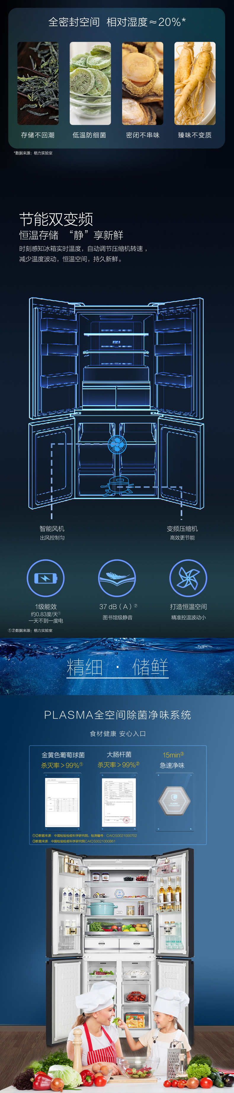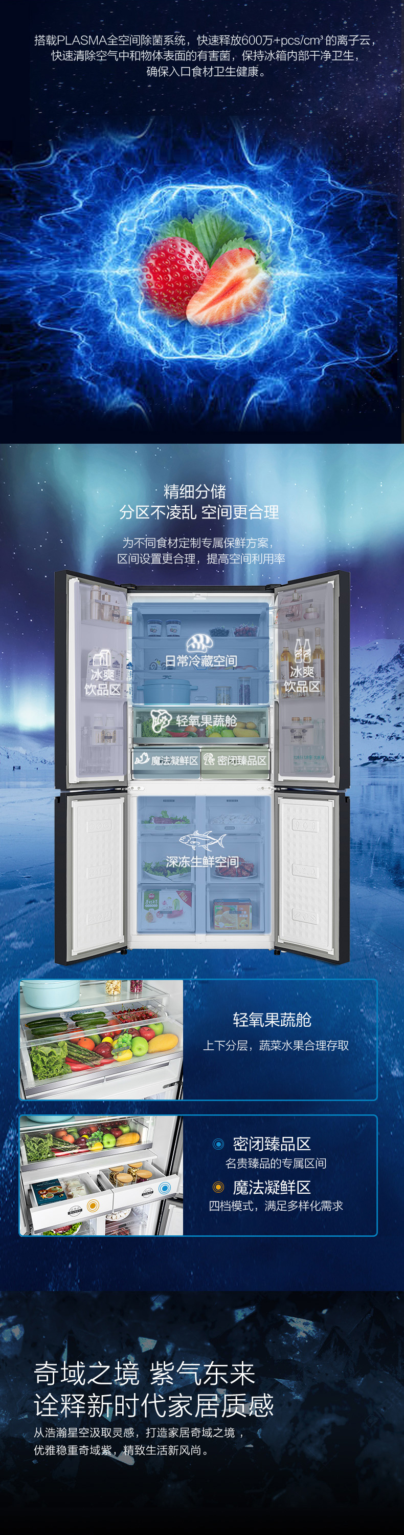 針對(duì)每種食材進(jìn)行精細(xì)化分區(qū),定制專(zhuān)屬保鮮艙,涵蓋肉類(lèi)保鮮、果蔬保鮮、母乳儲(chǔ)存、干貨儲(chǔ)存以及除菌凈味五個(gè)維度,確保每一件食材的新鮮儲(chǔ)存