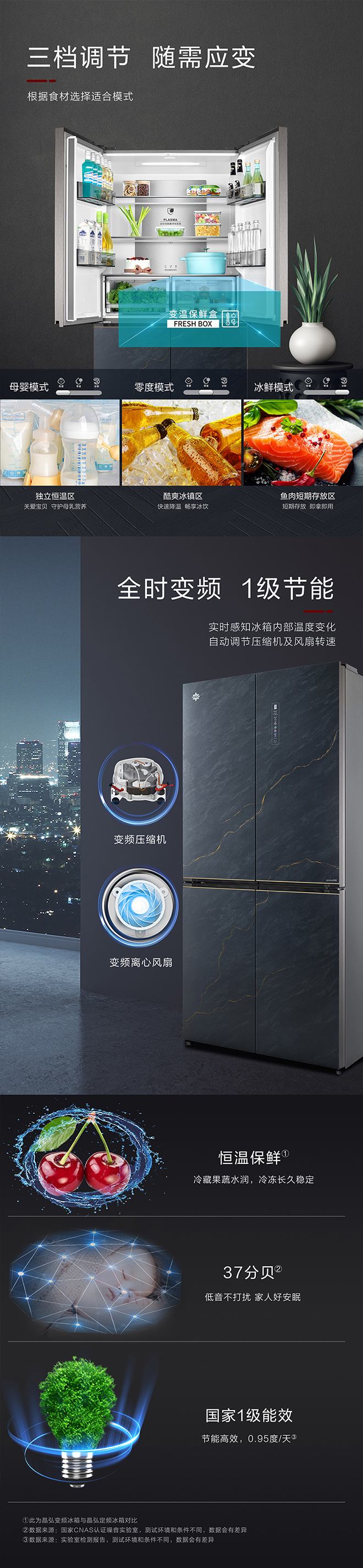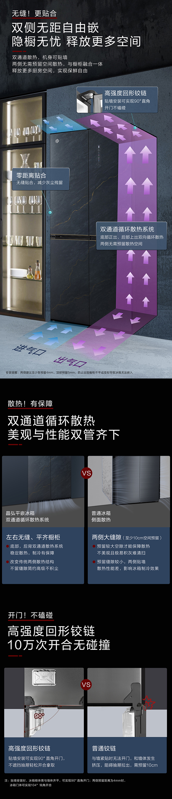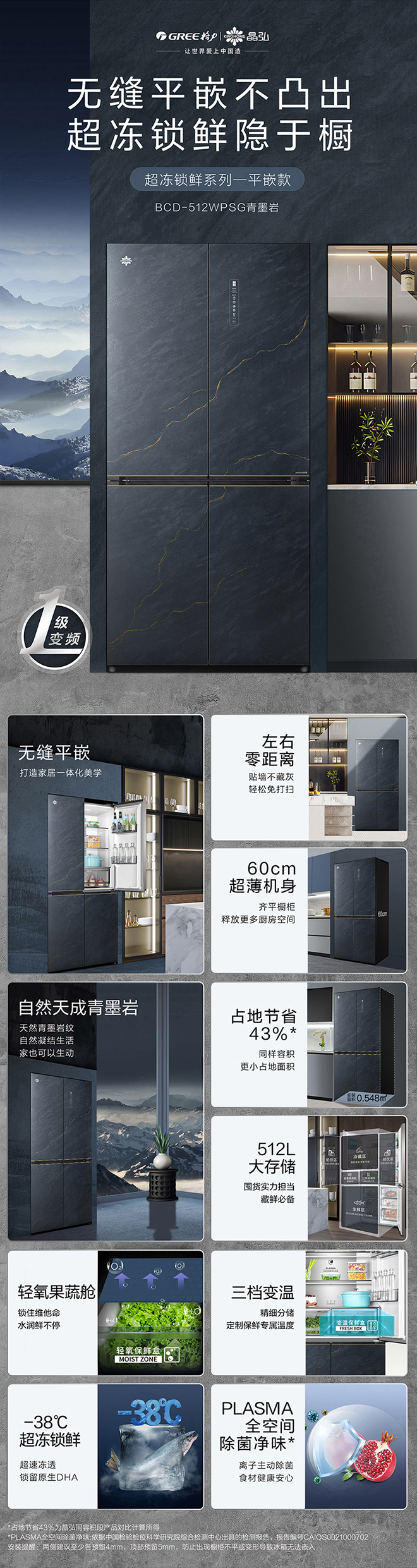 -38℃超凍鎖鮮;PLASMA全空間除菌凈味;平齊不凸出;雙通道循環(huán)散熱