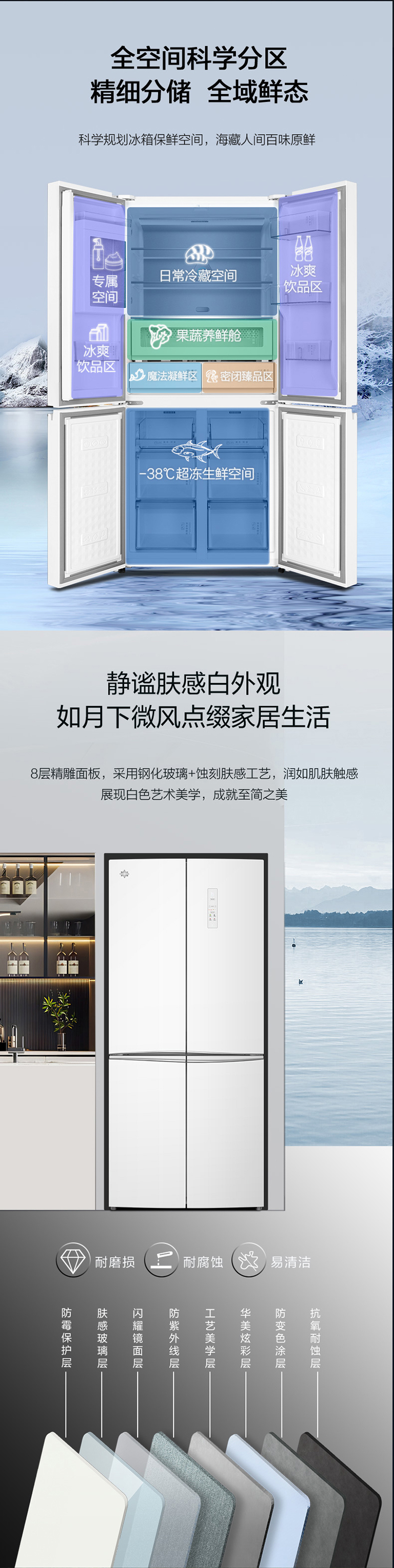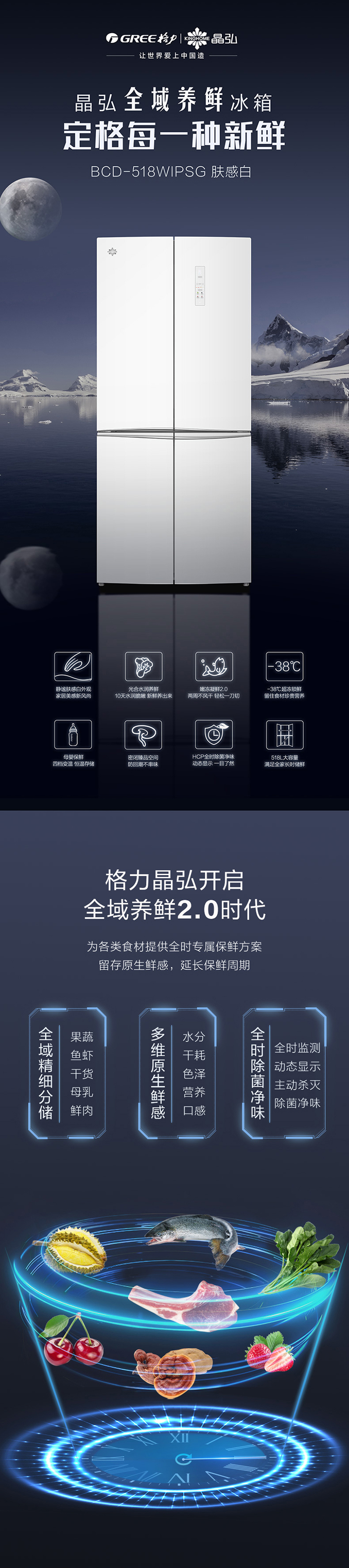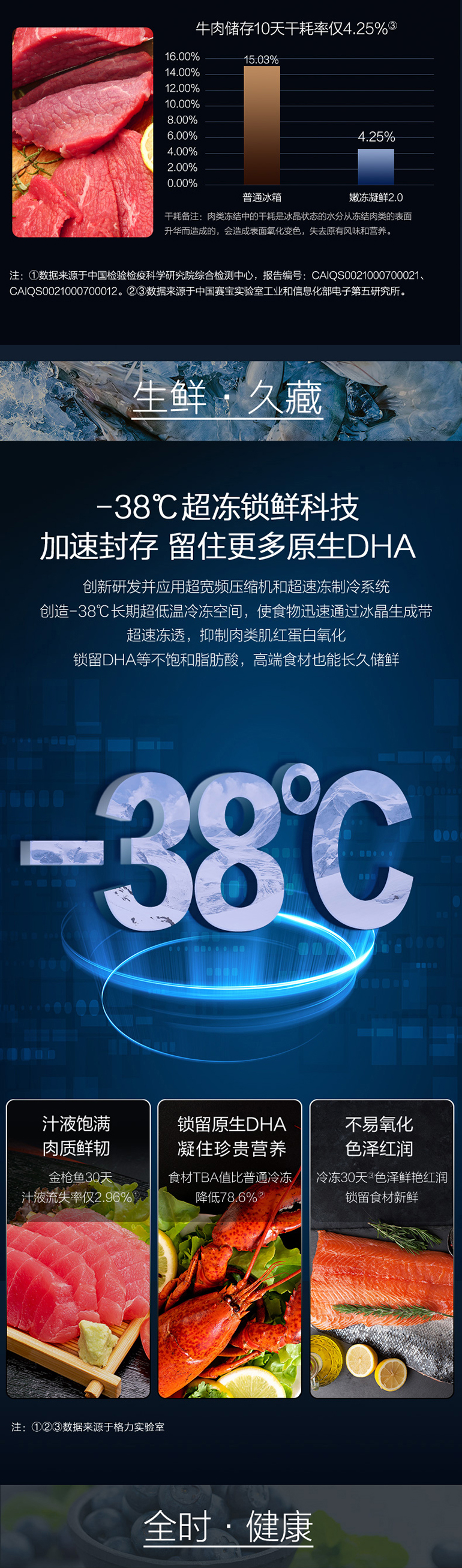 -38℃超凍鎖鮮;光合水潤養鮮;嫩凍凝鮮2.0;HCP全時除菌凈味
