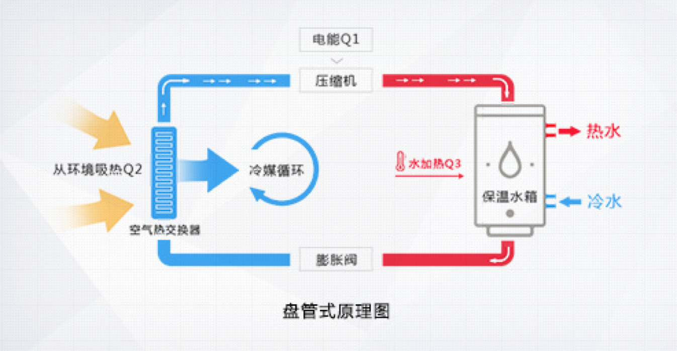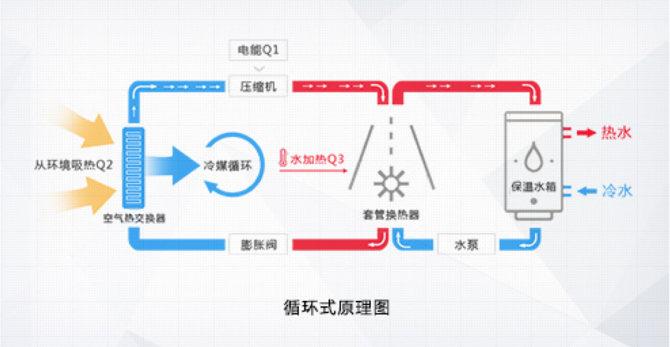格力空氣能熱水器,傳承空調(diào)核心科技,以消耗一部分電能為補(bǔ)償,通過(guò)熱力循環(huán),從周?chē)h(huán)境的低品位能源(空氣源)取得熱量,通過(guò)壓縮機(jī)將其輸送至冷凝器,釋放給水箱內(nèi)的水將其加熱。它的工作原理與空調(diào)制熱時(shí)的原理相類(lèi)似,只是空調(diào)是 從自然環(huán)境中吸取熱量,供給室內(nèi)空氣,而空氣能熱水器是以這部分熱量加熱生活熱水,其能效比是電熱水器的4倍,是燃?xì)鉄崴鞯?倍,是太陽(yáng)能熱水器的近2倍,是一種新型的高效、節(jié)能、環(huán)保的熱水器產(chǎn)品。一度電的付出,4倍熱量的收獲!